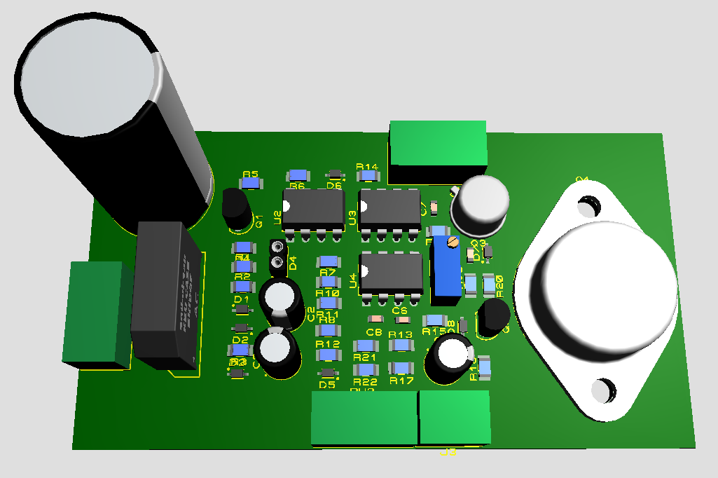 Yalnız bir PCB hatası var. Fan soğutucusunu olması gerektiği gibi monte edersen, doğrultucu diyotlarından birinin ayağına kısa devre oluyor. Bir ara çatırdamaya başladı, "ulan ne oluyor, yaktık mı yoksa" derken bu problemi farkettim.