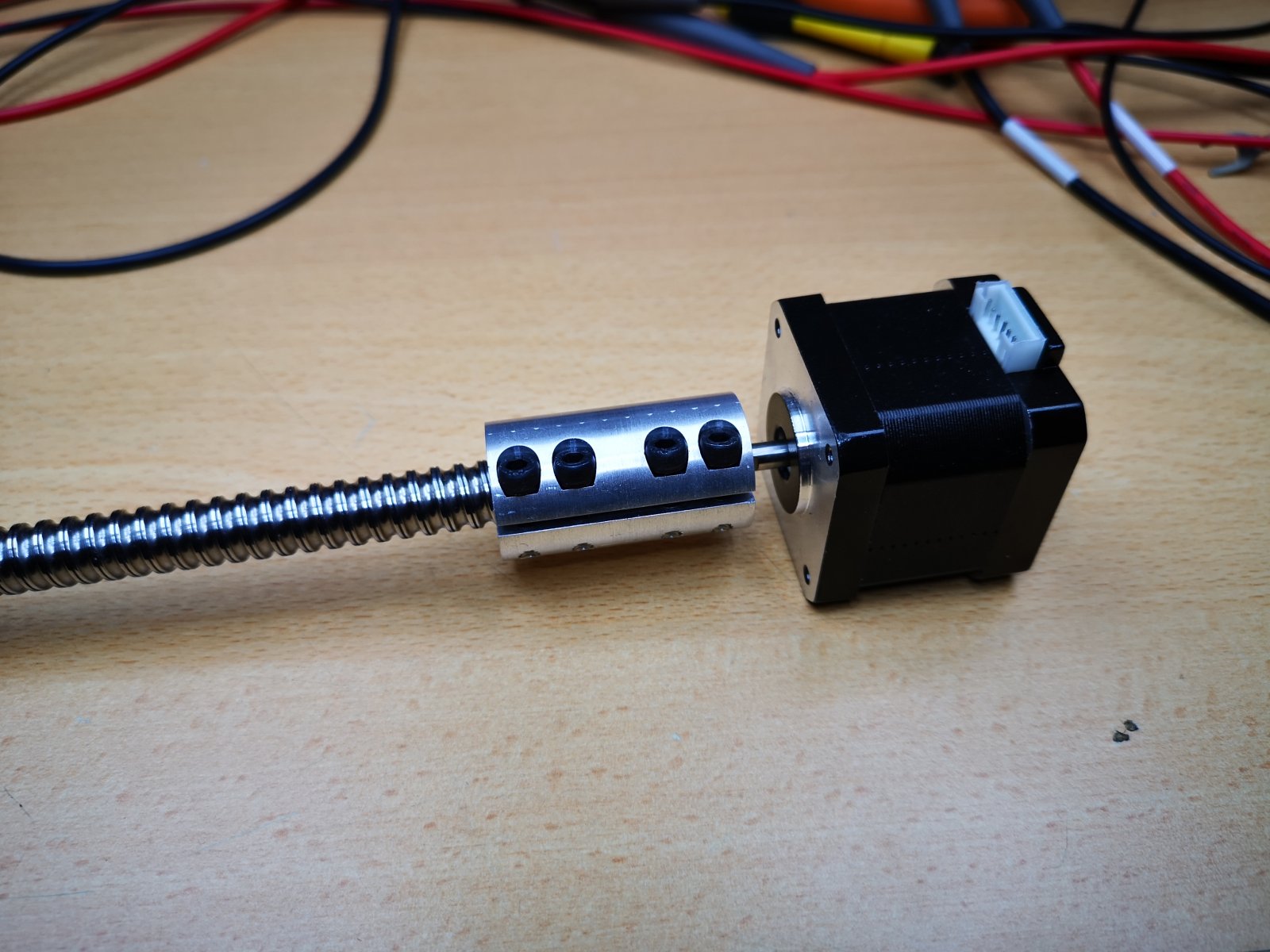 bilyalı mil ve step motoru kaplin ile denedim, iyi duruyor. Ama mil uzun geldi. 7 cm kesmem gerekiyor.