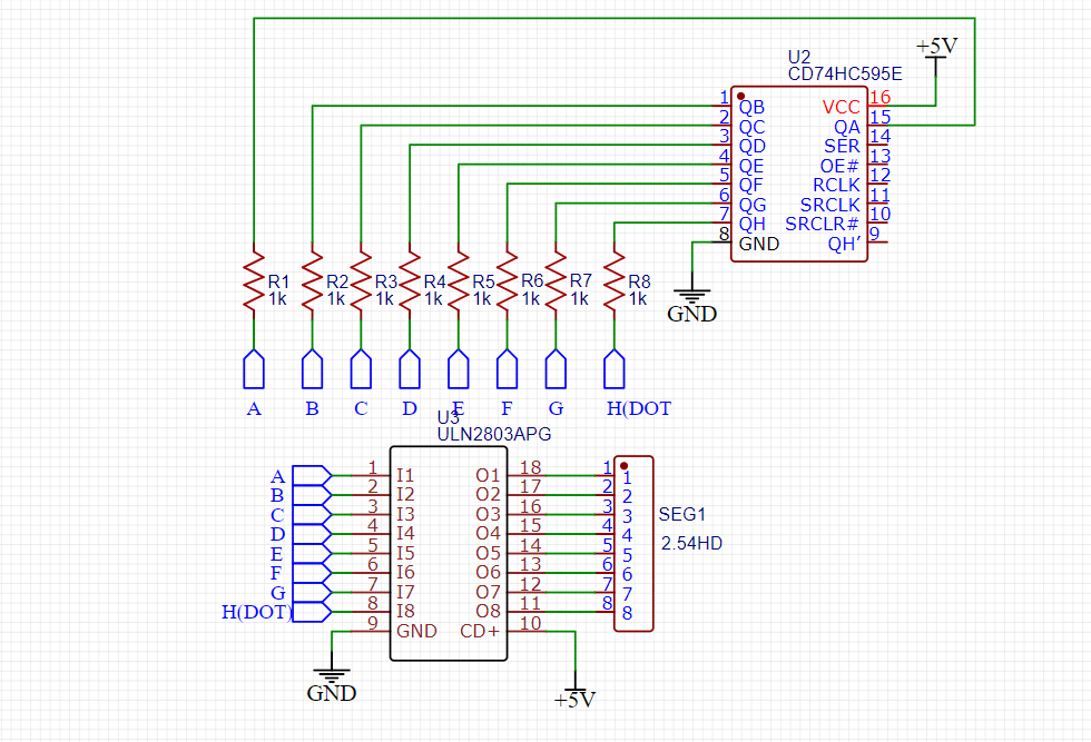 HC595 doğrudan sürebiliyor segmentleri bu 1K dirençler ile.