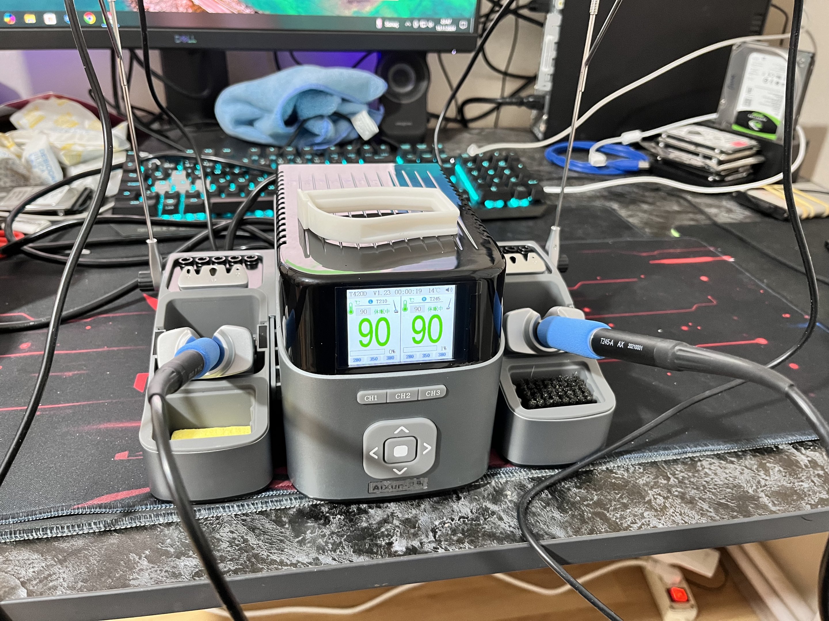 Jbc nin yanına aldık bakalım, şimdilik bir sorun yok gibi yazılım versiyonu 1.23, sizinkinden ufak tefek farklılıkları var gibi görünüyor. Yanında ekstra uç istemiştim bizim kutuyu da altından patlatıp içine koymuşlar. :)