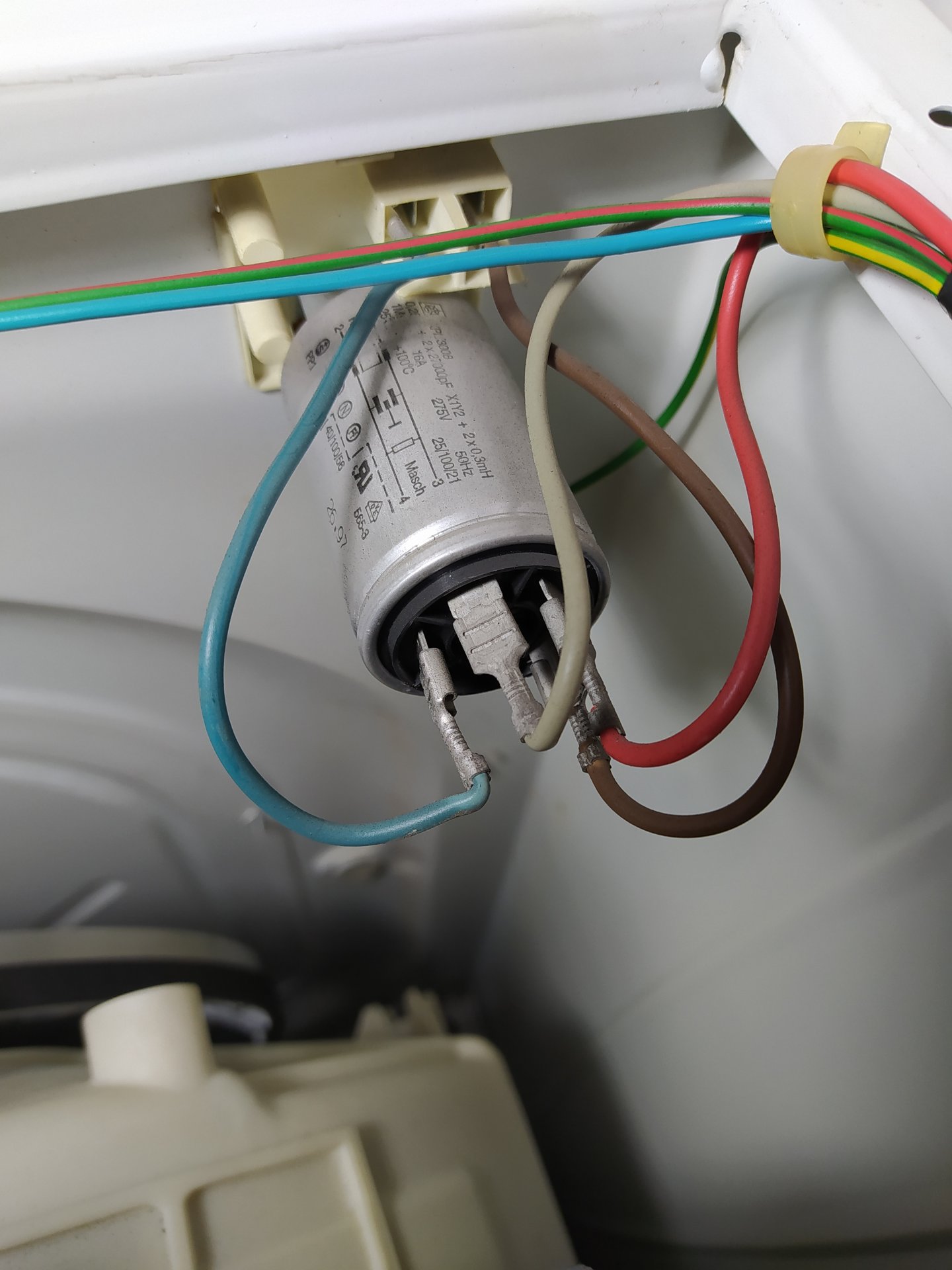 Makinenin kablosunu da ölçtüm kapasitöre kadar faz ve nötr geliyor sorun makinede maalesef, makinenin açma kapama ledi de yanıyor ama çalışmıyor nedense.