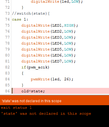 @Omega abi buldum. void Setup içinde aşağıdaki değişkenler var. Onların void Setup üstünde olması lazım. Hepsini kesip yukarı yapıştır.