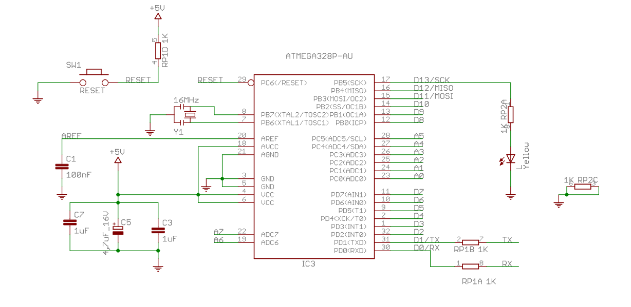 NANO şemasına bakınca, sol üstte reset devresini görüyoruz.