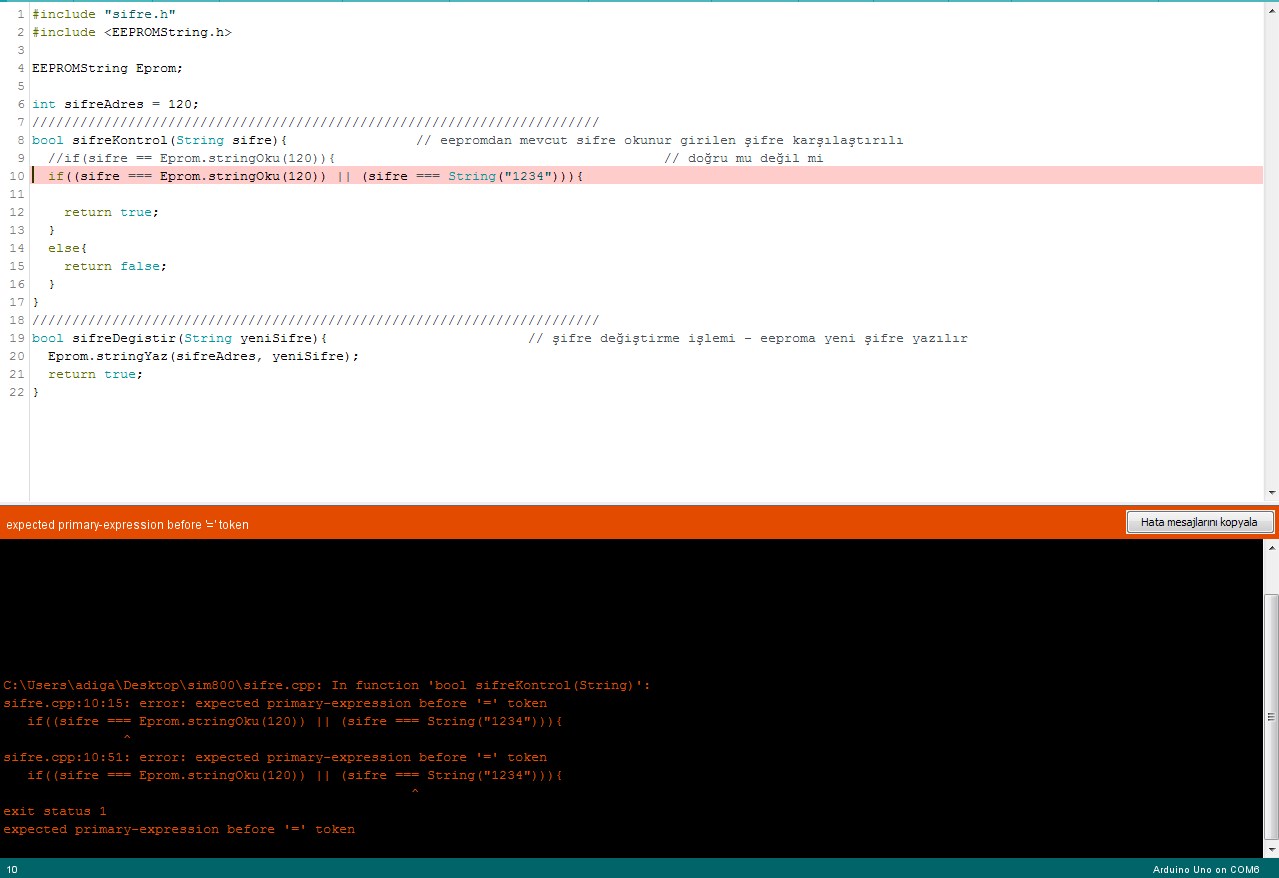 hocam eepromdaki tek şifre ile zaten yazılım doğru çalışıyor. test etmek için bazen bilerek şifreyi hatalı bazen de doğru giriyorum sorunsuz çalışıyor. sadece 2. bir şifre eklemek istediğimde bu sorunla karşılaşıyorum. şimdi verdiğiniz son kodu deneyecem bakalım ne dönecek.smsDenetle (String gelenNo, String gelenMesaj);