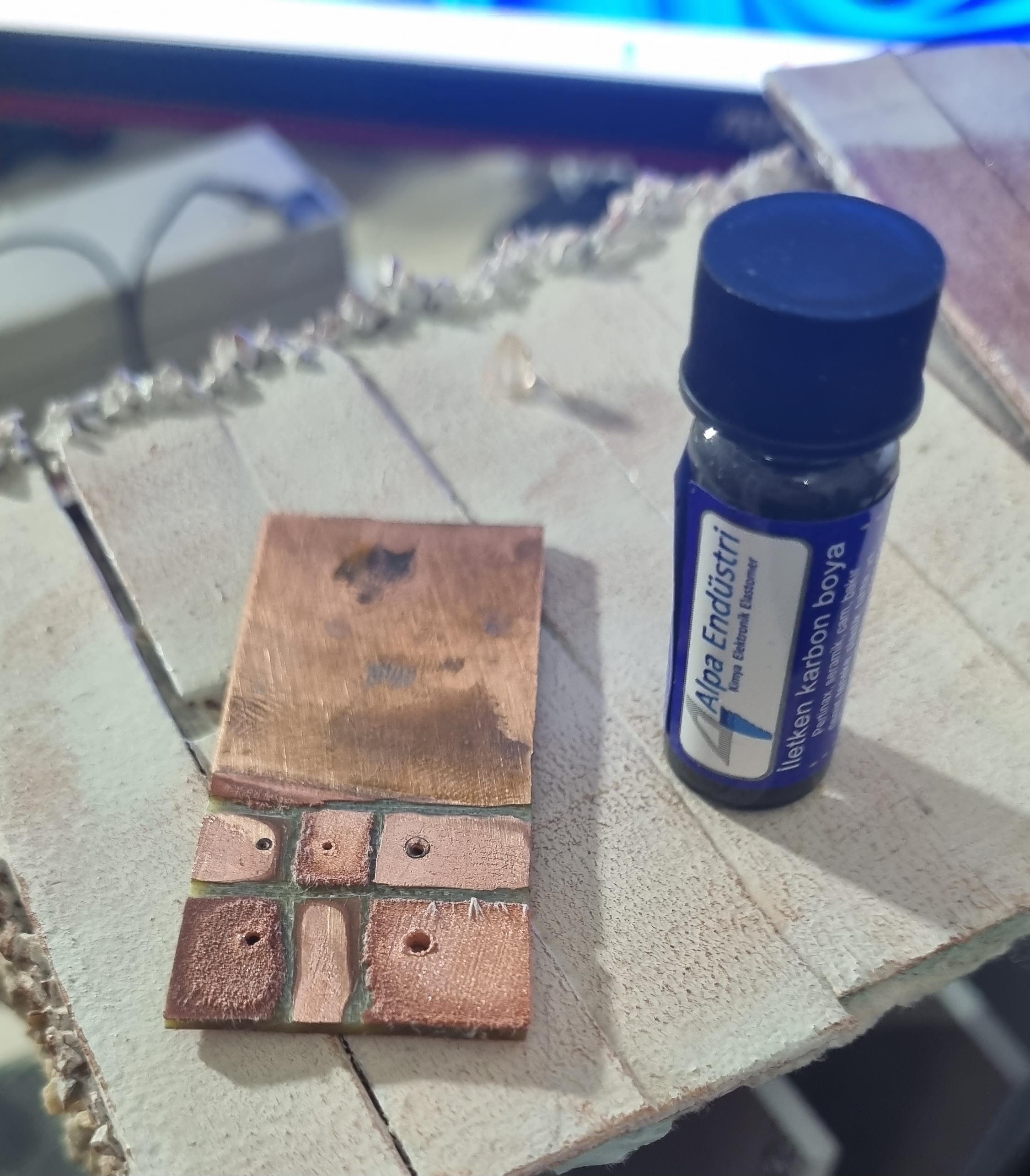 Ben karbon boya alıp delik içi kaplama için bir deneme yaptım. Gerçekten işe yarıyor ancak bu yöntem ile pcb yapmak çok uğraştırıcı.