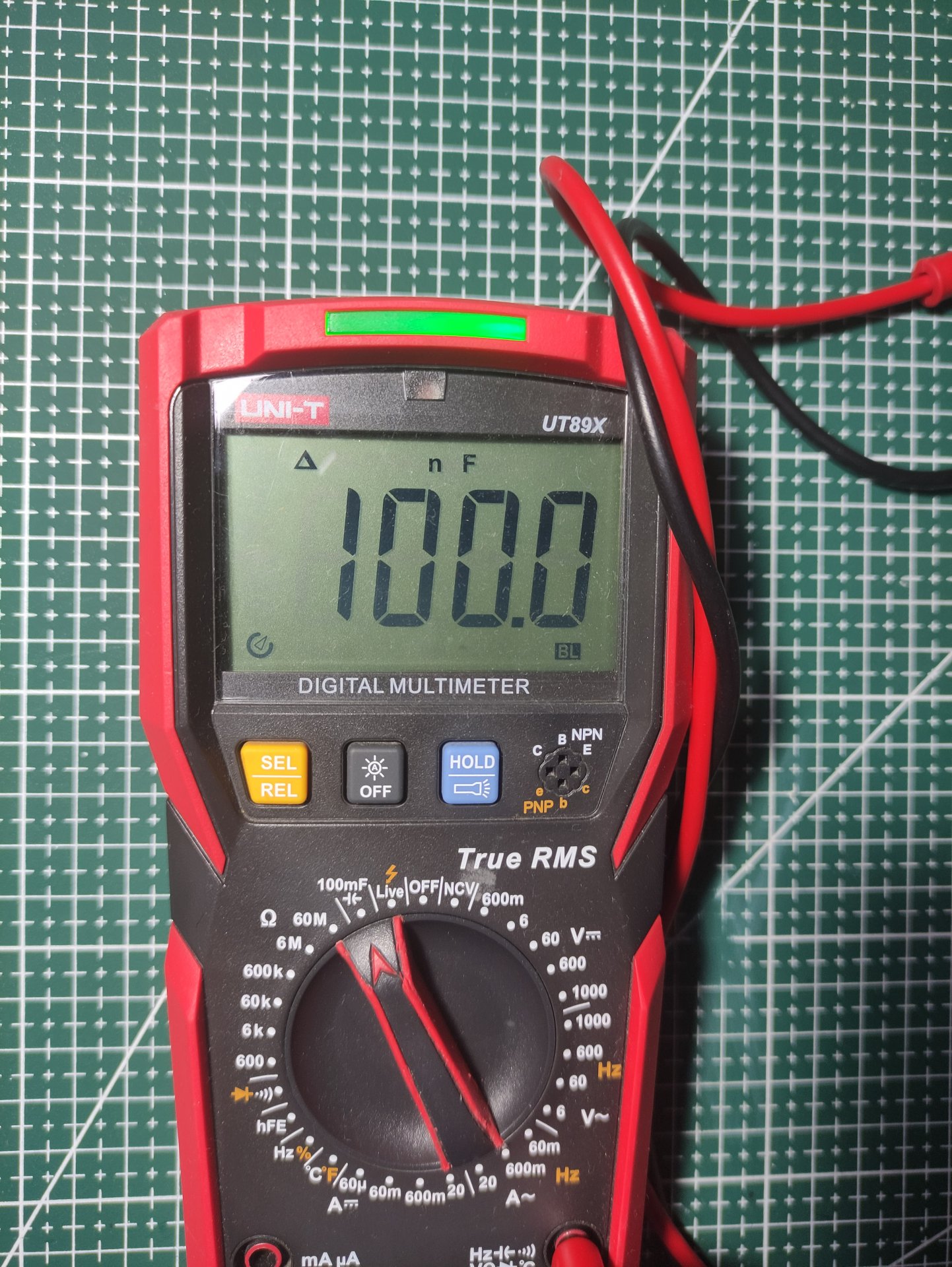 Bu da 1nF bir kapasitörün ölçümü. Yukarıdaki ekran görüntüsünden de anlaşılacağı üzere 0.3 nF'da ölçebilirsin.