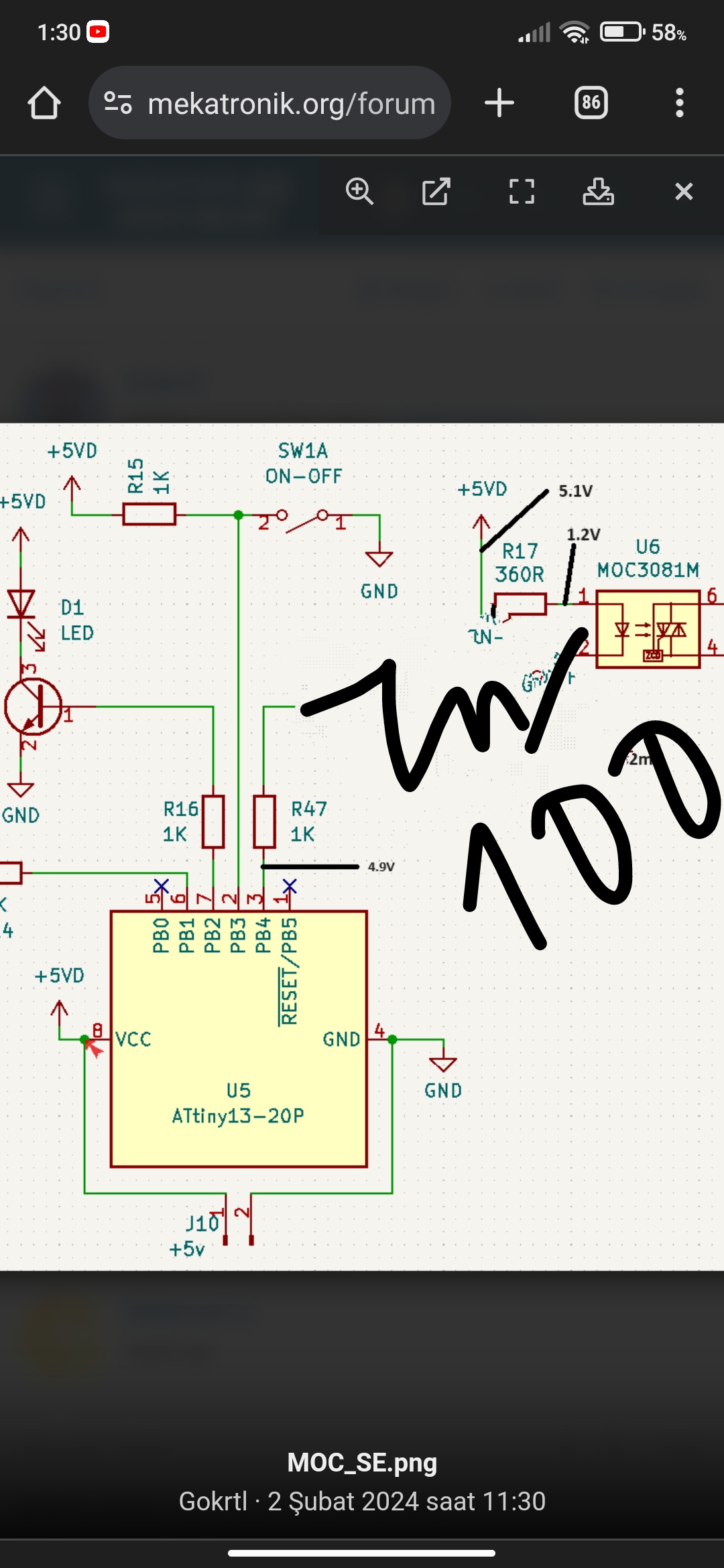 Şimdi dediğin gibi değerini düşürüp deneyeceğim. Bir tane paralel 1K takayım. Böylece 500 Ohm'a düşmüş olur.