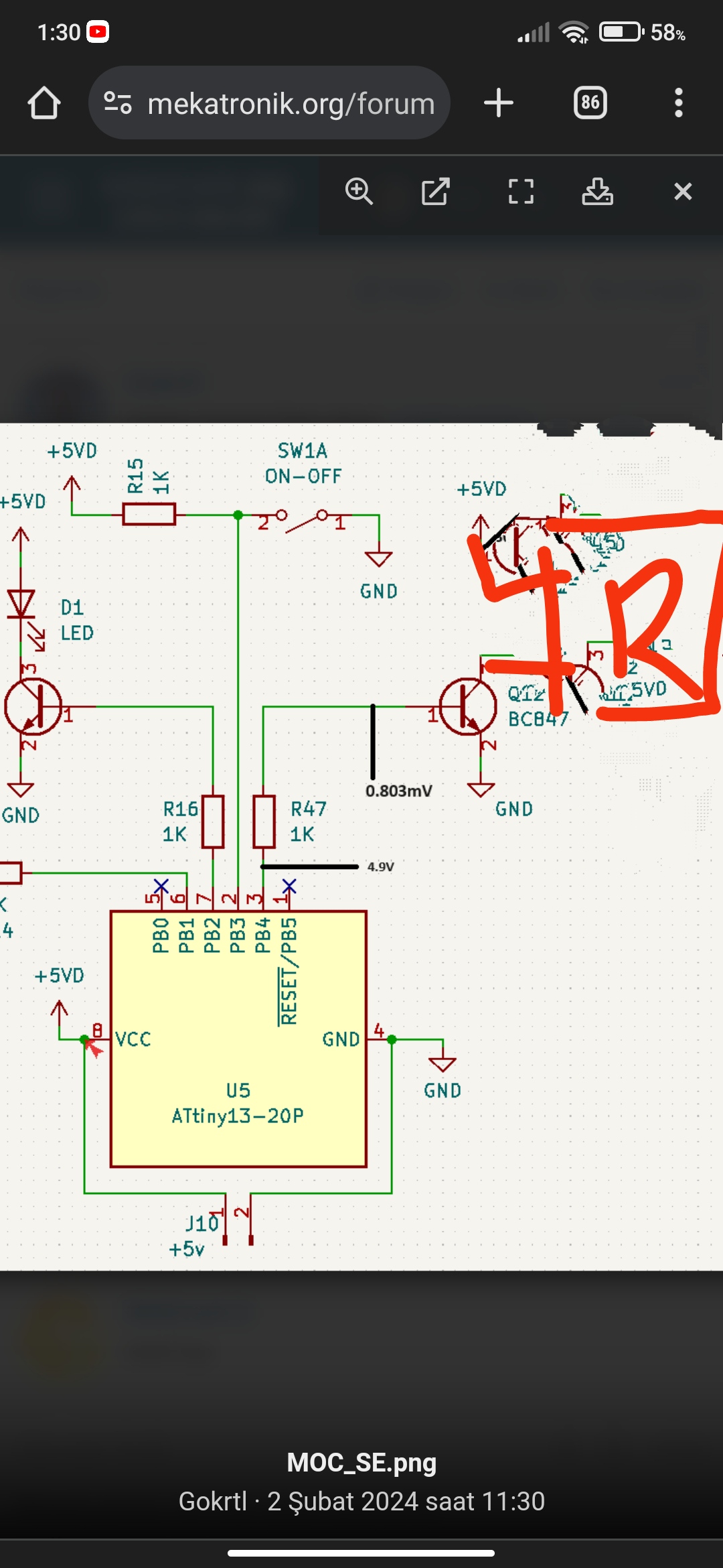 2. MCU Attiny13 olduğu için doğrudan kod yükleyemiyorum. Biraz takla atmam gerekiyor.