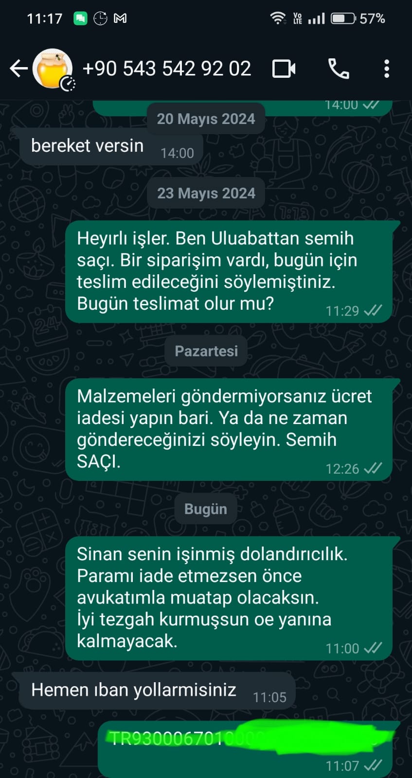 Sonra arıyorum engellemiş numaramı. Geçen gün başka numaradan aradım, sağlık bahanesi "beyin anjiyosu" olmuş. "Geçmiş olsun, olur böyle şeyler, iletişimde olalım sorun değil." dedim. Birkaç gün sonra yine söz tutulmayınca site ve şahıs ile ilgili şikayetleri araştırınca dolandırıcı olduklarını anladım.