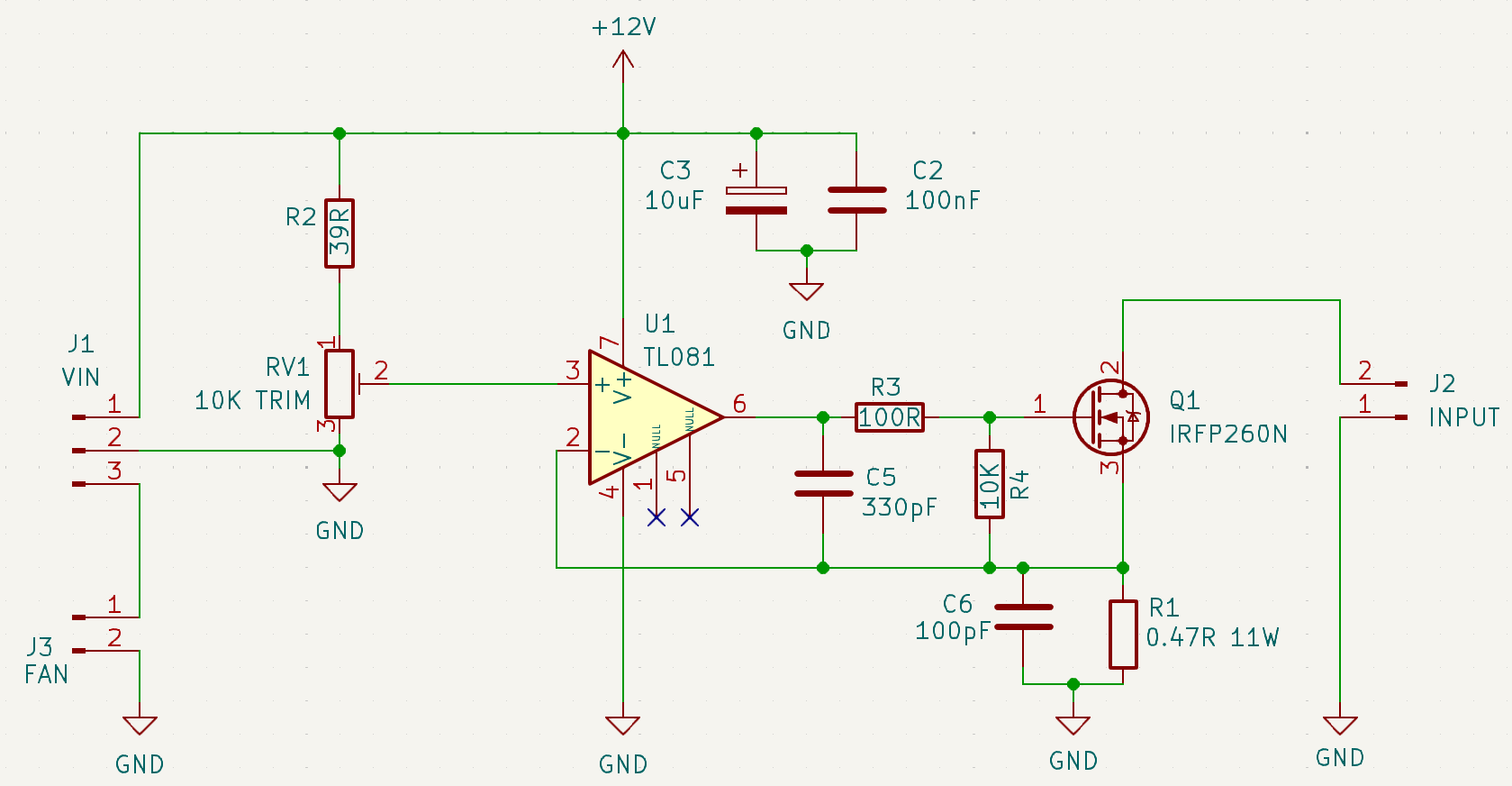 Opamptan 12v'u voltaj bölücü trimpot ile Mosfete azar azar göndererek anahtarlıyoruz. Mosfetin çektiği akımı da 11W üzerinde yakıyoruz.
