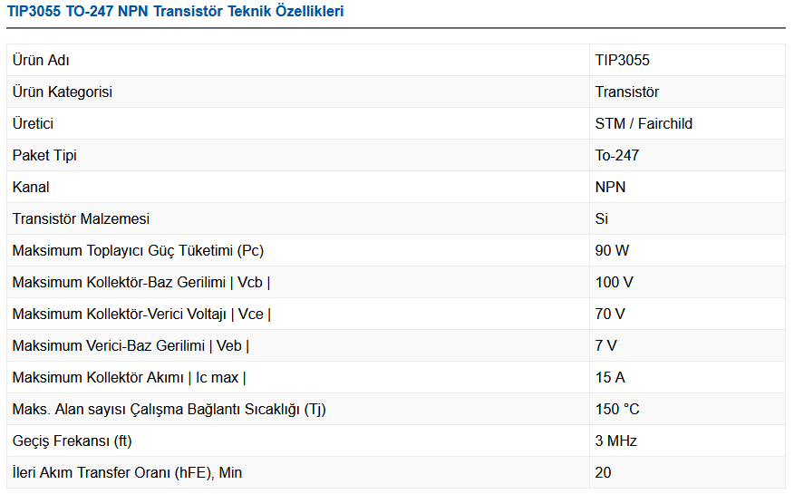 Bende bir tane var. Üstteki fotoğrafta sağdan ikinci. Kenarda duracağına kullanayım, abartı olsun. Zaten iki tane TIP3055 ile aynı fiyata denk geliyor. Önemli olan uyar mı?