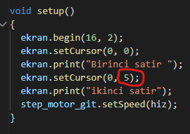 lcd.setCursor(12, 1); // 2.Satırın 12.Sırasına...