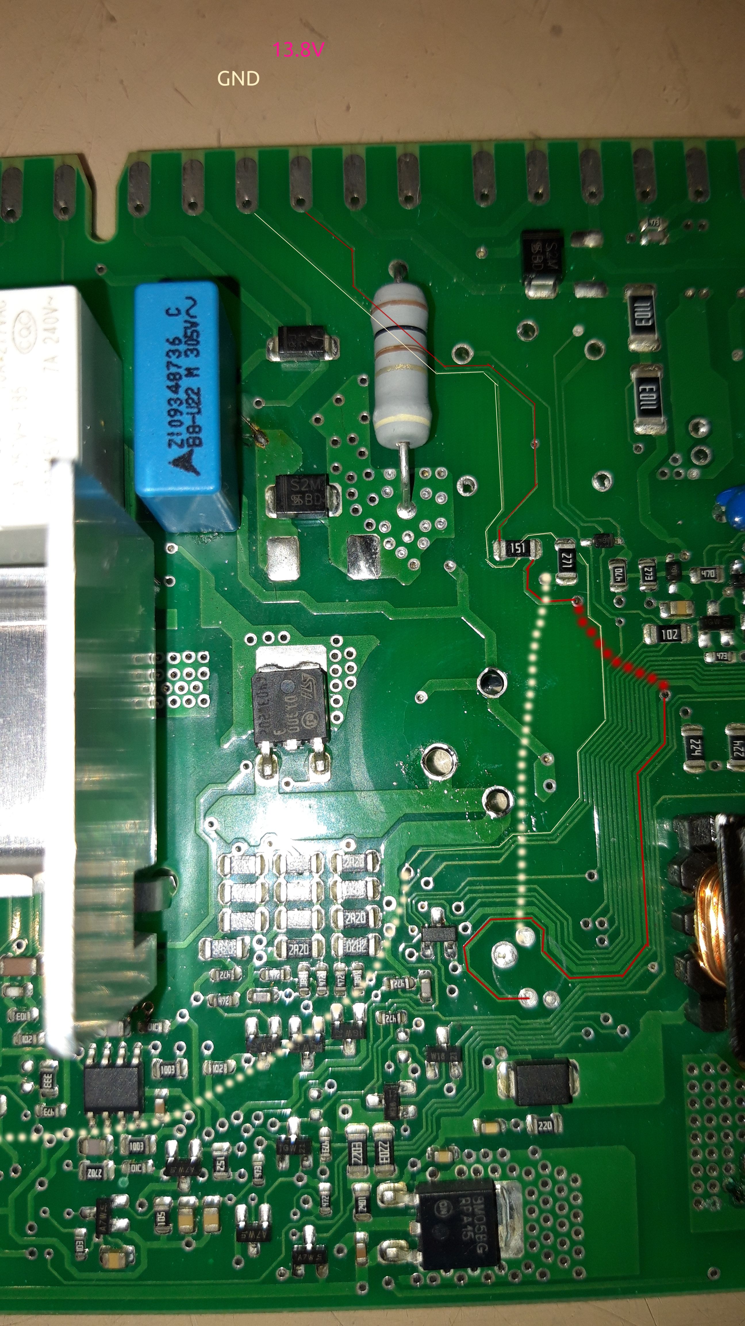 Hall sensörü bulamadın mı? Neden dirençle deneme yapmak gerek? İstersen uygun bir potansiyometre ve ampermetre ile makine açıkken 14mA geçiren değeri tespit et. Akımın düşük olması sorun olmayacak gibi, bu yüzden potu en yüksek direnç değerinden yavaşça azaltarak 14ma'yı bulursun çok da oyalayıcı bir iş değil. Bana daha emniyetli olur gibi geliyor böyle. Karttan devre şeması çıkarırken hata yapma ihtimali daha yüksek gibi geliyor bana.