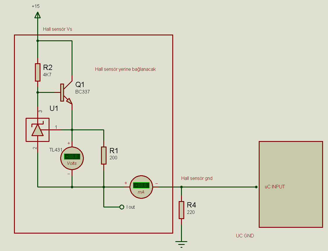 sabit akımı bağlayacaksan bu şekilde uygun görünüyor bana. Gnd yazdığın hall sensör gndsi ise uygun