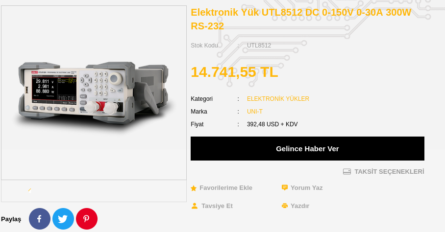UTL8512 15 bin gibi bir fiyata alınabiliyor. Aslında şu mantıkla alınabilir: 15 bin veriyorsun ve 300 W elektronik yük sahibi oluyorsun. Rigol'de 22 bin veriyorsun ve hackleyerek 350 W elektronik yük sahibi oluyorsun. Keşke şunu bir inceleyip deneme fırsatım olsa. PCB elektronik yükler ile Rigol gibilerin arasındaki boşluğu çok iyi dolduracak bir cihaza benziyor.
