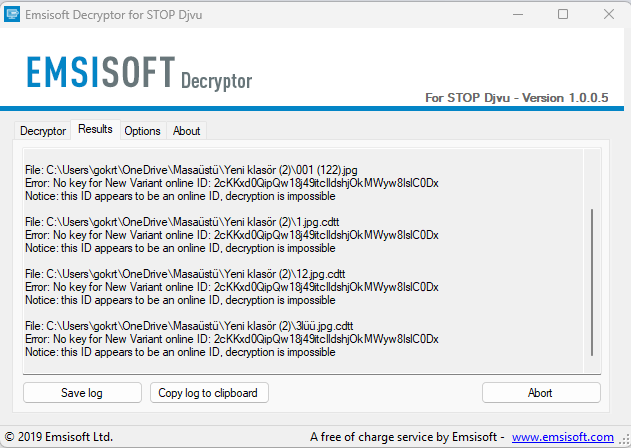 Merhaba. Bende 2-3 yıl önce .tsic uzantılı virüs bulaştırmıştım bilgisayarıma. Bir sürü araştırma yaptım 90gb lık aile fotoğraflarımız videolarımız idi. Bu emsisoft ile çok şükür kurtardım. Lakin bende dosyalar offline anahtarla şifrelenmişti bunun sebebi virüs bulaştığı an hemen şüphelenip ilk iş bilgisayarın internetini kapatmam oldu. Bunu yapınca virüs internetle bağlantı kuramayıp yerel bir anahtarla yani virüsün içerisine gömülen anahtarla şifreleme yaptı. Emsofta çözmesi için dosyaları verince bana offline şifre olduğunu biraz beklemem gerektiğini söyledi. Emsisoft piyasada bu tarz virüsleri inceleyip içerisindeki offline şifreleri açığa çıkartıp veritabanına ekliyor. Yaklaşık 3 ay sonra bi daha denediğimde dosyaların şifrelerinin çözüldüğünü gördüm. Lakin maalesef sizinki online anahtarla şifrelenmiş. Yani tek çare ya gerçekten 1000 doları vermek ya da emsisofttan ücretli destek almak. Sanırım çözemediklerinde parasını geri iade ediyorlar. Yanlış hatırlamıyorsam.