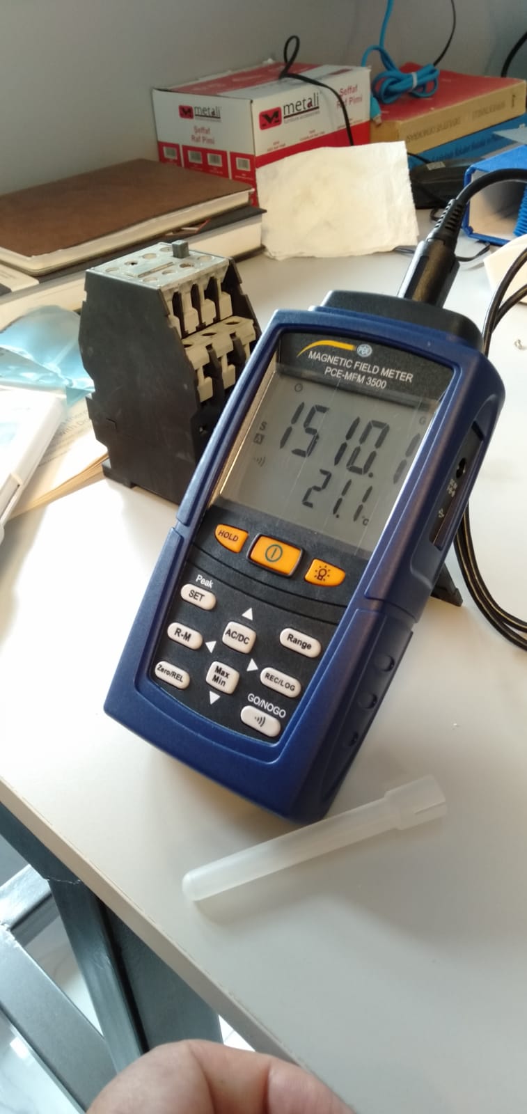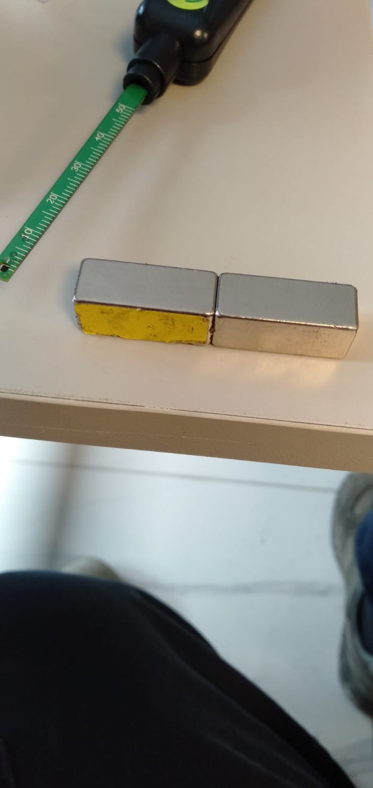 Ardindan miknatislarin arasindaki hava araligina bobin yaklastirip teraziye dokundurmadan bobine akim verdim. Itme kuvvetini teraziden okudum.