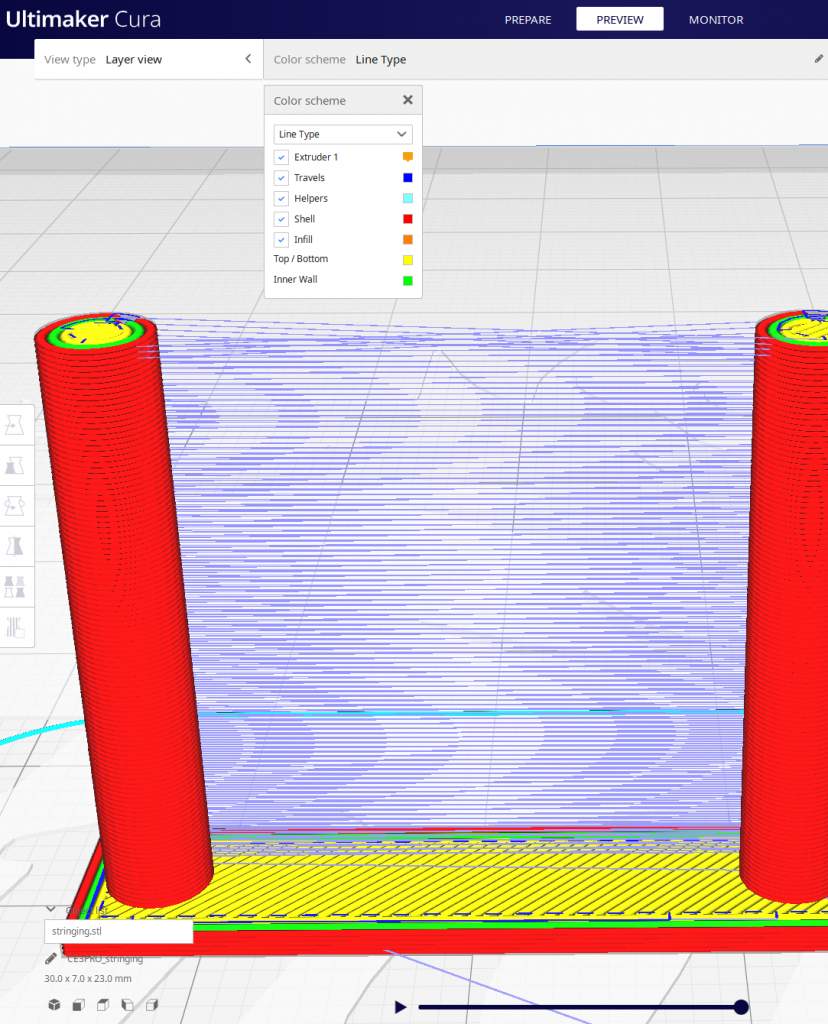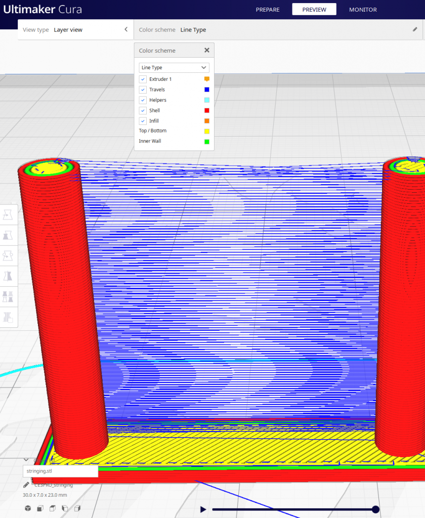 Cura'daki önizleme ekranı bunu gösteriyor. Line -> travel açtıktan sonra açık mavi çizgiler retraction ile gitmeyi, koyu maviler retractionsız gitmeyi gösteriyor. Buraya örnek koydum soldakinde retraction açık sağdakinde kapalı.