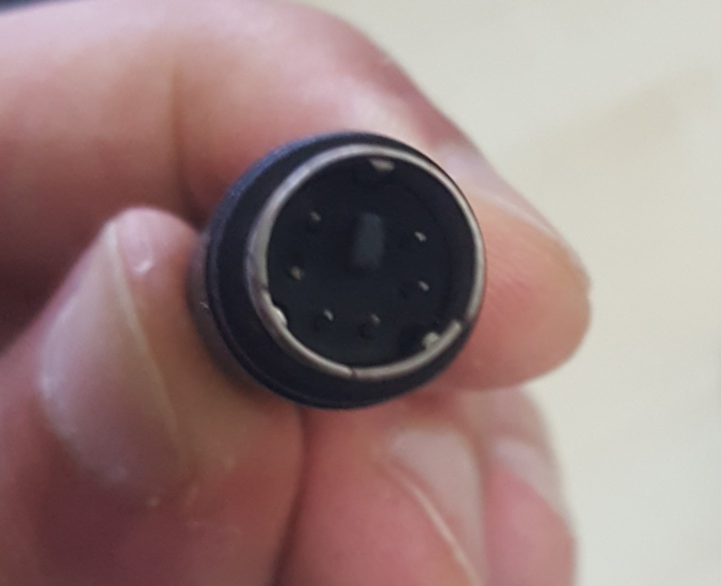 6 pinli DIN soket kullanılmış olsa da kart da 5 pin kullanılmış, boştaki pin mavi kabloya bağlı ve kart tarafındaki ucu boşta.
