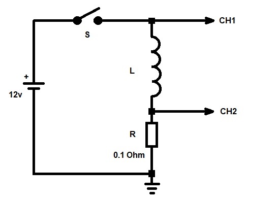 Mesela direnc uclarindaki gerilim 0.1V oldugunda akim 1A e tirmanmis demektir. Akimin sifirtan 1A'e tirmanma suresi scopta yatay eksen bellli. V zaten 12V R de 0.1 Ohm tek bilinmeyen L o da