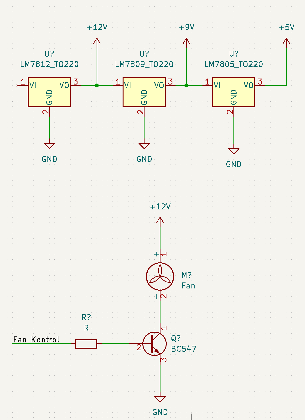 Devamında 5v ve 12v regülatörleri koydum. Bunlardan biri display, diğeri fanların beslemesi.