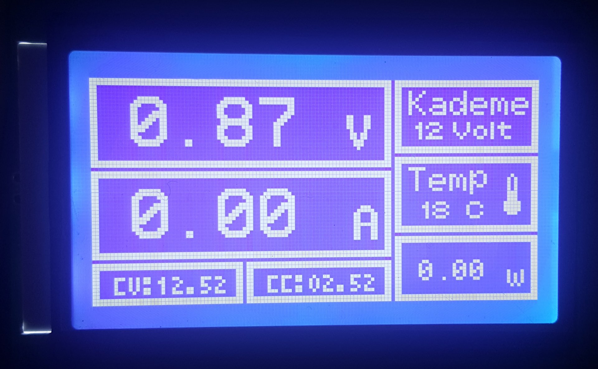 Önce değer set edilecek, okeyleyince çıkışı verecek. Ama ben hem set edilen değer, hemde çıkıştaki değer olarak planlamadım ekranı. Ekranda görünen 12v 1A okeyleyince çıkış aktif olacak. Aslında her fikre açığım. Ekranı yan çevirip aynı bu görseldeki gibi de yapabilirim ama bunun sonu yok. Sürekli fikir değiştirerek proje süresini uzatıyorum.