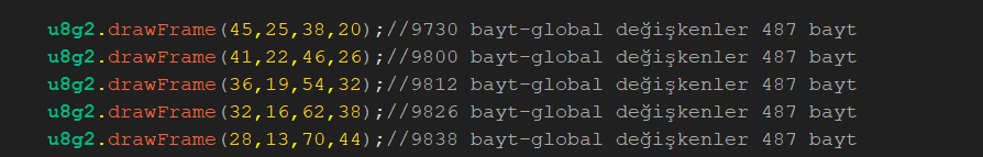 İki kod bloğu arasında gördüğüm tek fark, birinde u8g2.print kullanırken diğerinde u8g2.drawStr kullanmışım.