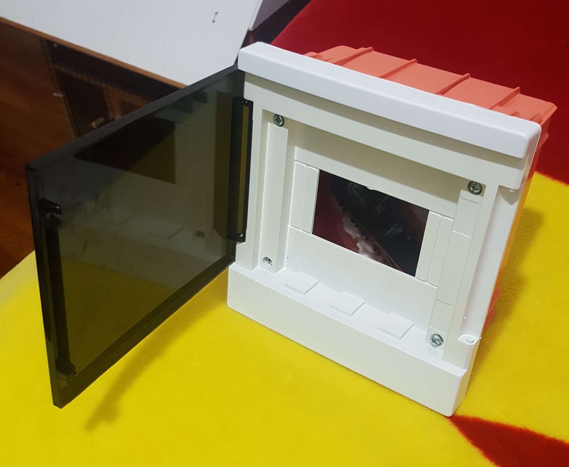Bak bu bir şartel kutusu. Zamanında buna bile para verdim. Arkasına 7segment display koyar, önüne de iki pot takarım diye. Ama proje geliştikçe boşa çıktı bu :D