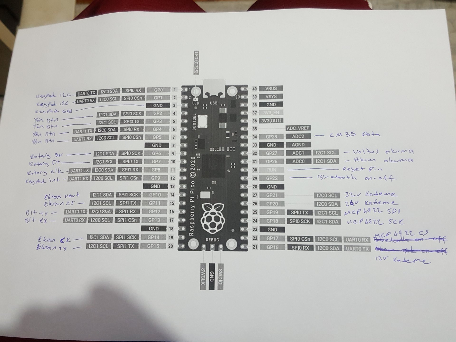 O zaman sana sürüyle pin tasarruf ettirecek bir öneri getireyim. BLE kullanan bir uygulama yazarsın cep telefonuna, sonra da tüm ekran pinlerini, tüm keypad pinlerini, enkoderi, yön tuşlarını boşa çıkarmış olursun :)