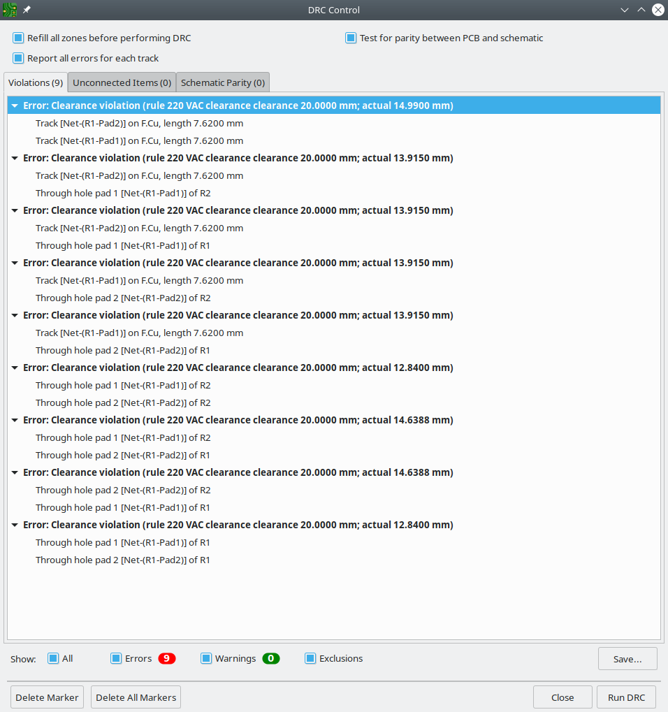 Şimdi 2 mm clearance tanımladım ve test ettim. DRC hatası yok.