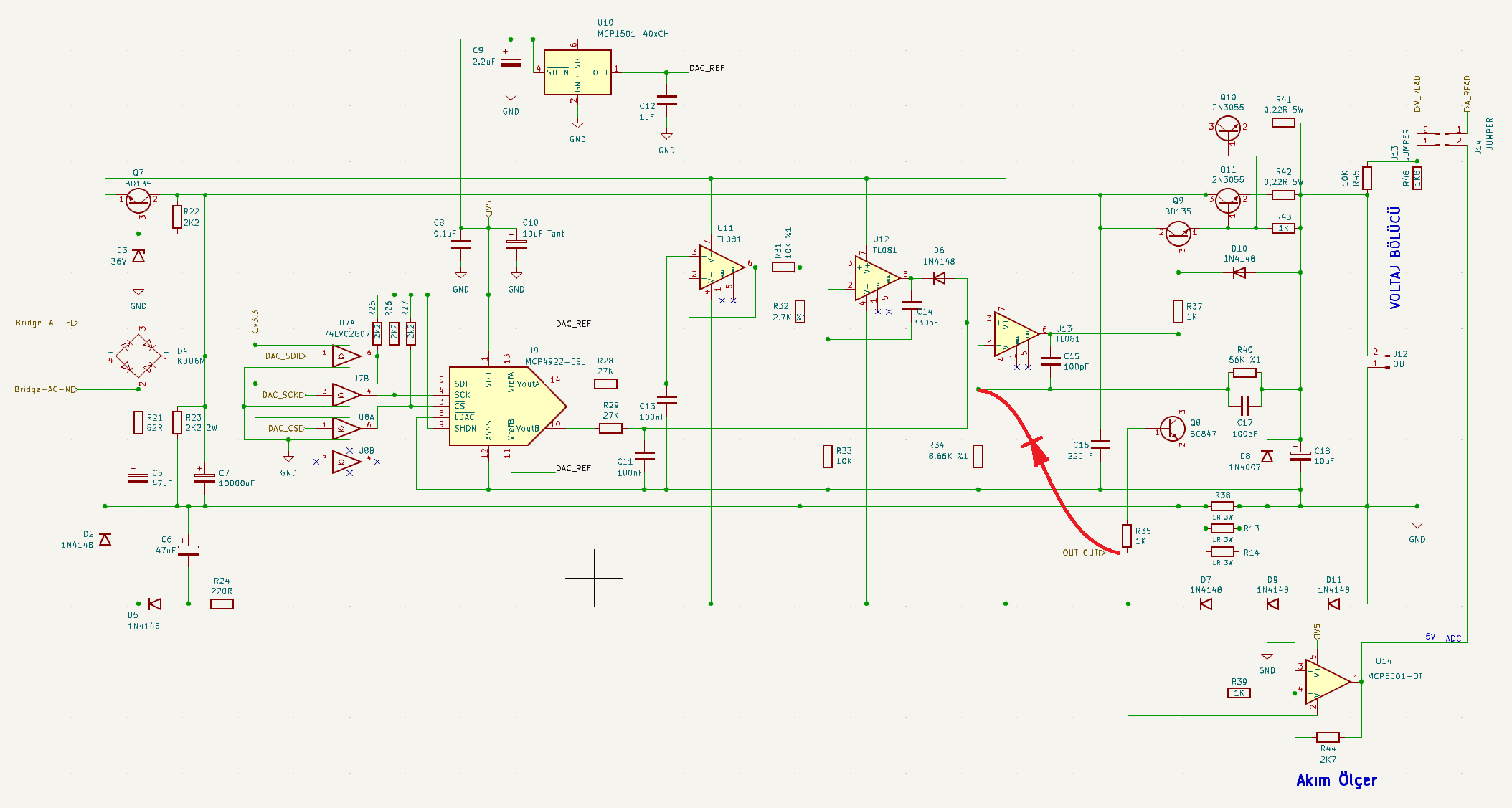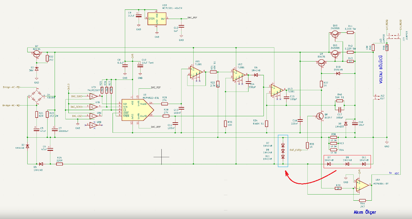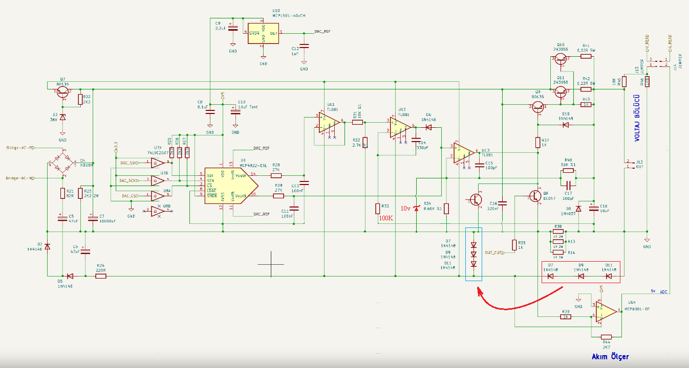 Hatirlarsaniz kart uzerinde calisma yaparken bir arkadas tum opamplarin ve negatif besleme devresinin bozulmasi sorunu ile karsilasmisti. Bunun sebebi de muhtemelen R38 akim olcum direncinin kopmasiydi.