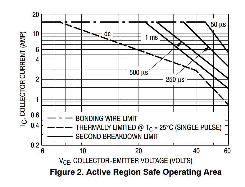 Transistörün kollektör emiter arasına düşen gerilim, bu esnada geçen akım ve Junction sıcaklığı (gövdeden ölçülen değil) için güvenli sınırları belirlemen ve dışına çıkmaman lazım.