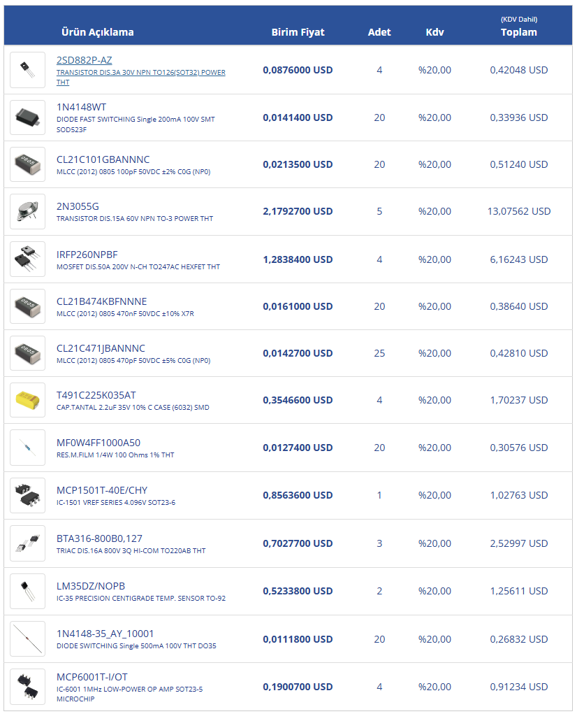 Bu vesileyle sipariş listemi de paylaşayım.