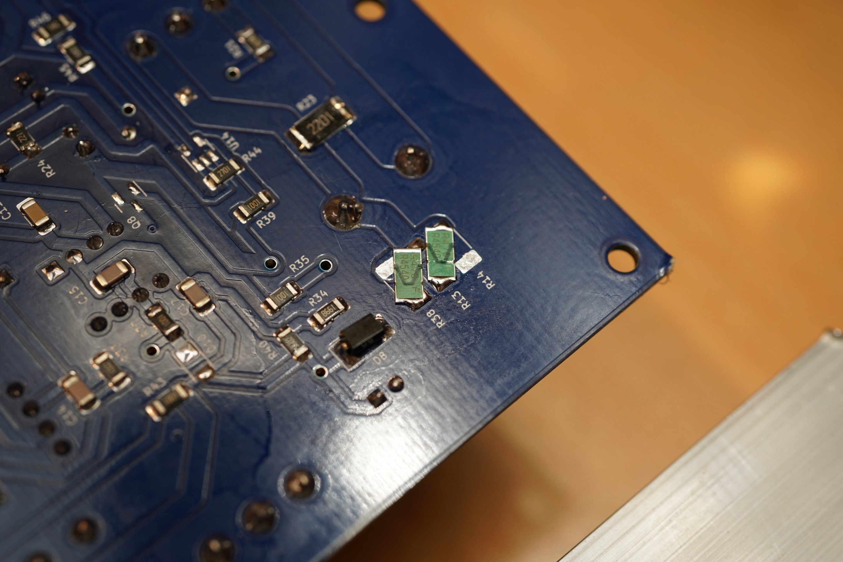 Bu şekilde test edince -2.1V referans vardı. Sonra aşama aşama her şeyi geri topladım ve her seferinde referansı ölçtüm. Güç transistörlerini taktığım anda negatif referans çöküyordu. Bariz görünen bir hata da yoktu, o yüzden aldım elime fırçayı, güzel bir IPA banyosu yaptırdım. Sonra tekrar denedim ve -2.1V referans geldi. Herhalde bir yerde lehim topu vardı yıkayınca kısa devre kalkmış oldu.