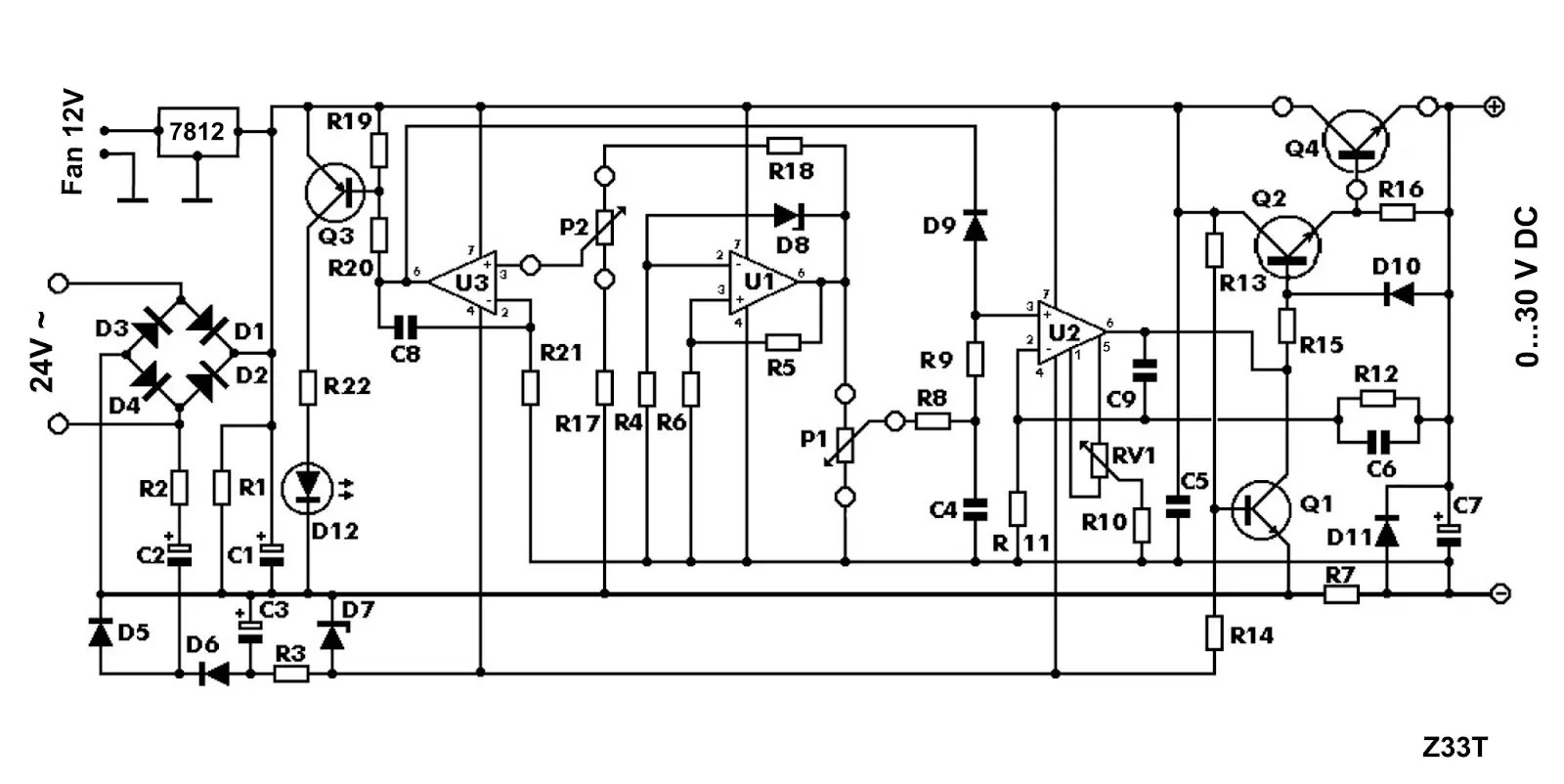 Devre şeması okuyabildiğini belirtmedin, ama ben gene de devre şemasını koyayım. Devrede sadece U1 kalsın, U2 ve U3 sök. U1 çıkşında 10V gibi bir değer olması lazım. Ölçümü şaseye göre yap, yani güç kaynağının eksi çıkışı.