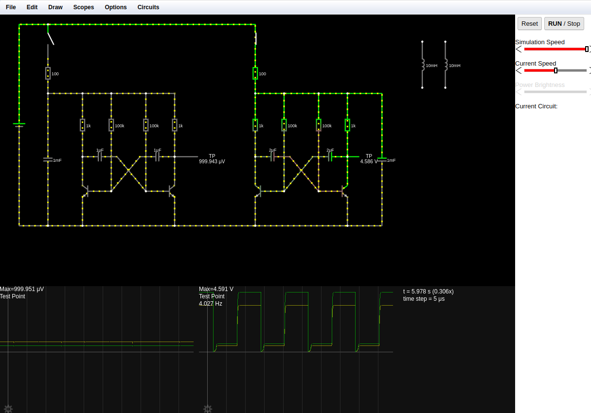 Bir devrenin elektrigini ilk verdiginde devre davranis bozuklugu gosterir. Bu durumu gozlemek icin simulasyon baslamisken arada bir simulatoru resetle.