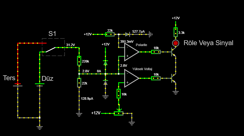 Girişte röle olacak. İki komparatör (lm358) ile giriş voltajı 0 üzeri 60v altı kabul edilecek.