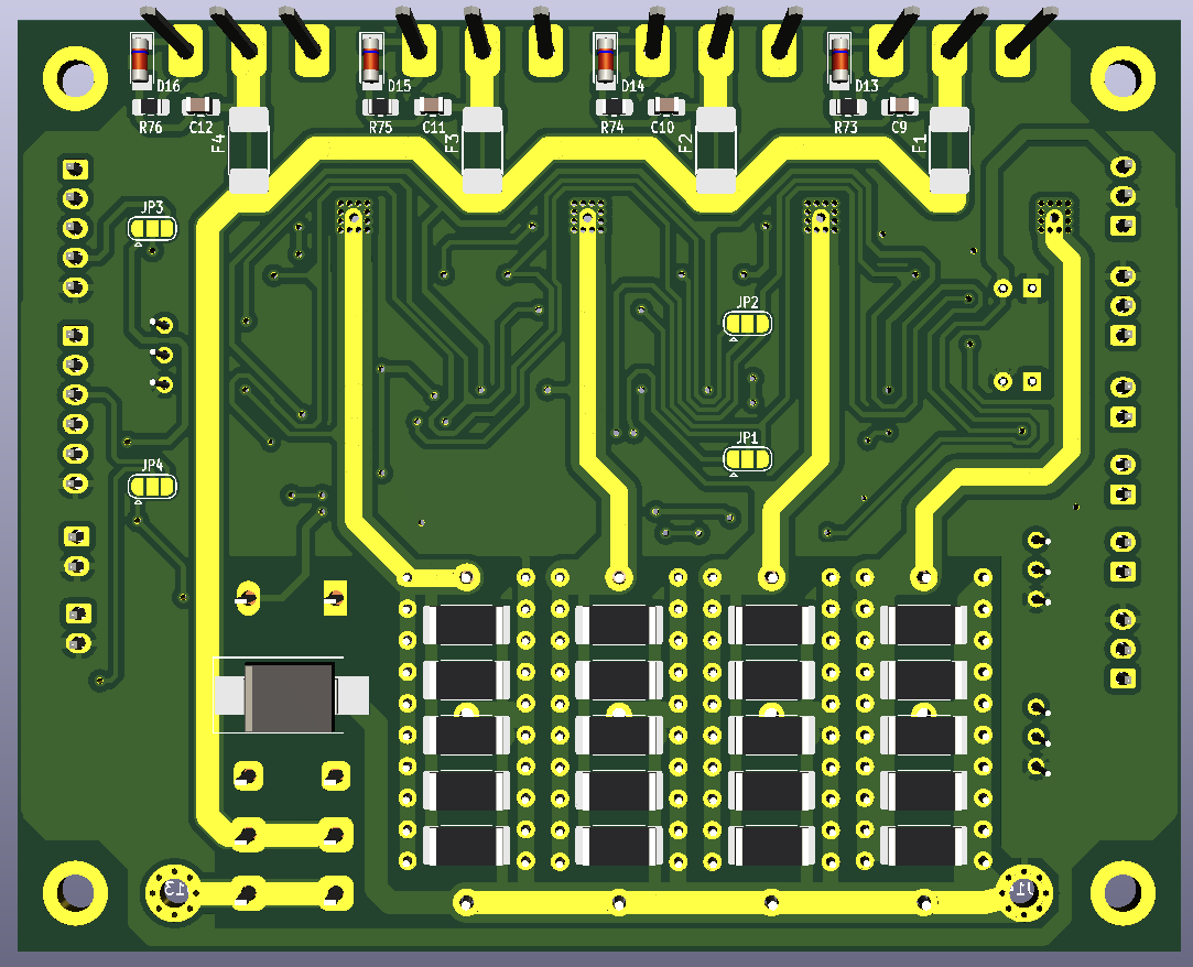 Ben de anca şimdi bakabildim gönderdiğin dosyaya. Ama onu güncellemişsin bu fotolarda. Daha önce bahsettiğin ground loop hakkında bir şey diyemeyeceğim ama yüksek akım ve düşük akım ayrımı mantıklı. Bence kontrol sinyallerimizin yüksek akımlı yollardaki ufak da olsa gerilim düşümlerinden etkilenmemesi için yükü bağlayacağımız yerde birleşmeli. sen de öyle yapmışsın gördüğüm kadarıyla. Hatta ben rölenin grounda dönüşünü de bu noktaya ayrı yapmak bile fark eder. sürücü opamplar çok düşük akımlarla ve voltajla çalışıyor çünkü.