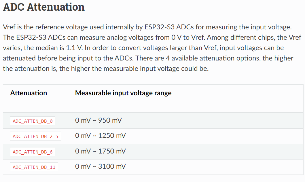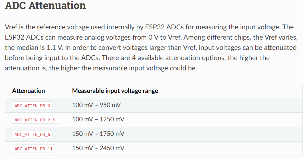 1- ESP32 ya da ESP32 WROVER kullanırsak varsayılan zayıfltma (-11 dB) ile 150-2400mV aralığnda düzgün ölçüm alabiliriz. Dolayısıyla çıkış seviyesini ona göre ayarlamalı ve ofset eklemeliyiz. 150 mv altında körlük ve doğrusallık problemi oluyor. Bu referans dökümanında da böyle belirtilmiş.