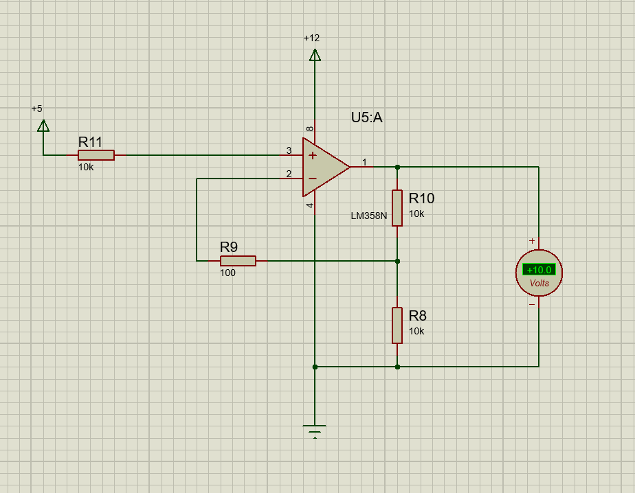 Ayarlı bir referans gerilimimiz var ve opamp ın (+) girişine bağlı. (-) girişe geri besleme sinyalimiz bağlı ve bu sinyal gerilim bölücü üzerinden gelerek iki kat kazanç sağlıyor. İlk durumda (+) girişte 4.5V var ve (+) giriş daha yüksek olduğu için opamp çıkış voltajını yükseltiyor. Çıkış sinyali 9.6V olduğunda geri besleme gerilim bölücü direnci bağlantı noktasında (aslında çıkışta) 9V gerilim seviyesi oluşuyor. Gerilim bölücü ile 9V bölünerek 4.5V geri besleme sinyali gönderiliyor ve opamp dengeye oturuyor. Çıkış gerilimi düşme eğilimi gösterir ise geri besleme voltajı da düşeceği için opamp hemen çıkışı yükselterek dengeyi tekrar sağlıyor. Bu tasarım bizim temelimizi oluşturacaktır.