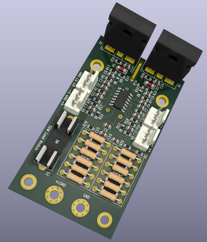 Eve küçük işe büyük olmak üzere iki adet yük lazım. Öylemi böylemi derken modüler yapmaya karar verdim. Avanataj olarak hata ayıklama daha kolay olacak. Aşağı yukarı tüm sistemi komple tasarlayıp sonra böldüm. İlk aşama olarak yukarıdaki modülün pcbsini çizdim. 1 adet yapıp iyice test edeceğim. Sorun yoksa öyle devam edeceğim. Şönt bölümünü opsiyonlu yaptım. İsteğe göre tüm tipler deki şönt olarak takılabilir. Hem to220 hemde to247 takmak mümkün... Denemelerde Sonradan eklemek yerine gerektikçe takmak veya sökmek adına bol bol kondansatör attım. Gerisi denemeye kaldı...