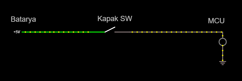 Şimdi bir bataryam var. Kapasitesi, şarj kontrolu vs hepsi tamam. Enerji yokken bataryadan çekilen bir akım yok. Kapak açıldığı zaman bir switch ile batarya devreye bağlanıyor. Sadece mcu ve eproma enerji gidiyor ve Kaydı alıyorum. Kapak kapandı enerji kesildi. Sorun yok. Ama ya kapak açık kalır ise... Sonra napacam. Kapak açık kaldı pil bitesiye kadar öylece çalışacak mı mcu? Burada senaryoda takılıyorum. Pil kapasitesi yüksek test etmedim ama belki 4-5 saat çalışır sistem. Halbuki ben kaydı aldığım anda işim bitiyor. Sonrasında Pili devre dışı bırakmam için bir çözüm bulamıyorum... Yada ne yapacağımı bilemiyorum.Eprom kaydım olduğu için devre tekrar enerji ile çalıştığında kayda göre istediğim gibi yönlendirme yaparım orada da sıkıntı yok. Sadece kapak açık olduğu sürece devrede enerji kalması hoşuma gitmiyor.
