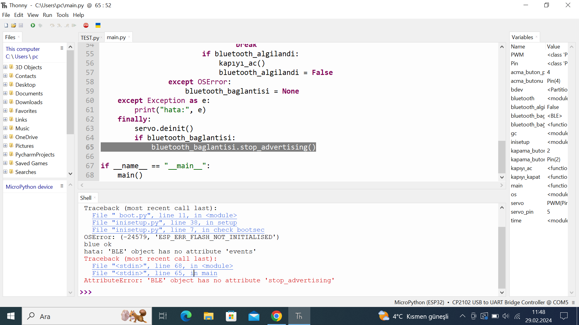 pServer->getAdvertising()->start(); // kopma sorunu için eklendi