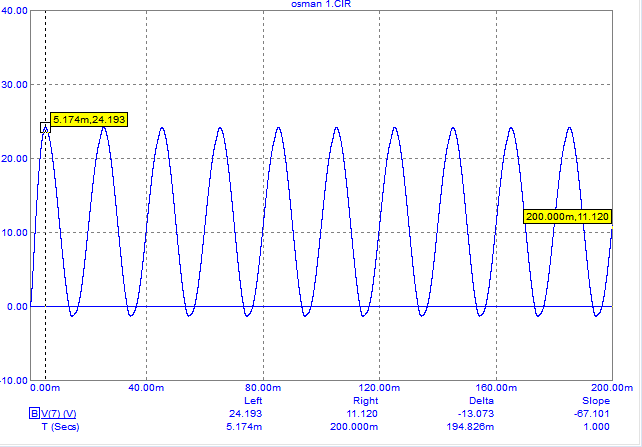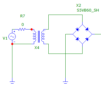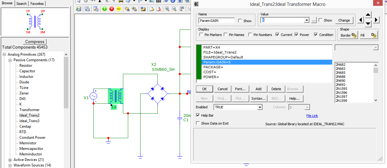 Hocam bu şekilde yapınca 24V çıkışı aldım bu arada sayenizde microcape çok alıştım.Transformatör için işaretlediğin GAIN parametresini değiştiriyorsun. Sen şu anda 8 vermişsin, dolayısıyla girişteki 220 V 8 katına çıkarılıyor. Trafo çıkısı 1760 V, devredeki bütün komponentleri yaktın, geçmiş olsun