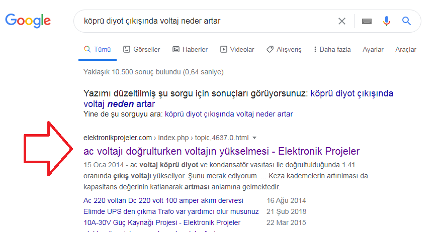 Köprü diyot çıkışında voltaj neden artar diye türkçe yazınca