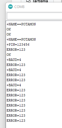 Varsayılan olarak 9600 de çalışıyor, değiştirmek istediğimde "ERR123" hatası alıyorum.