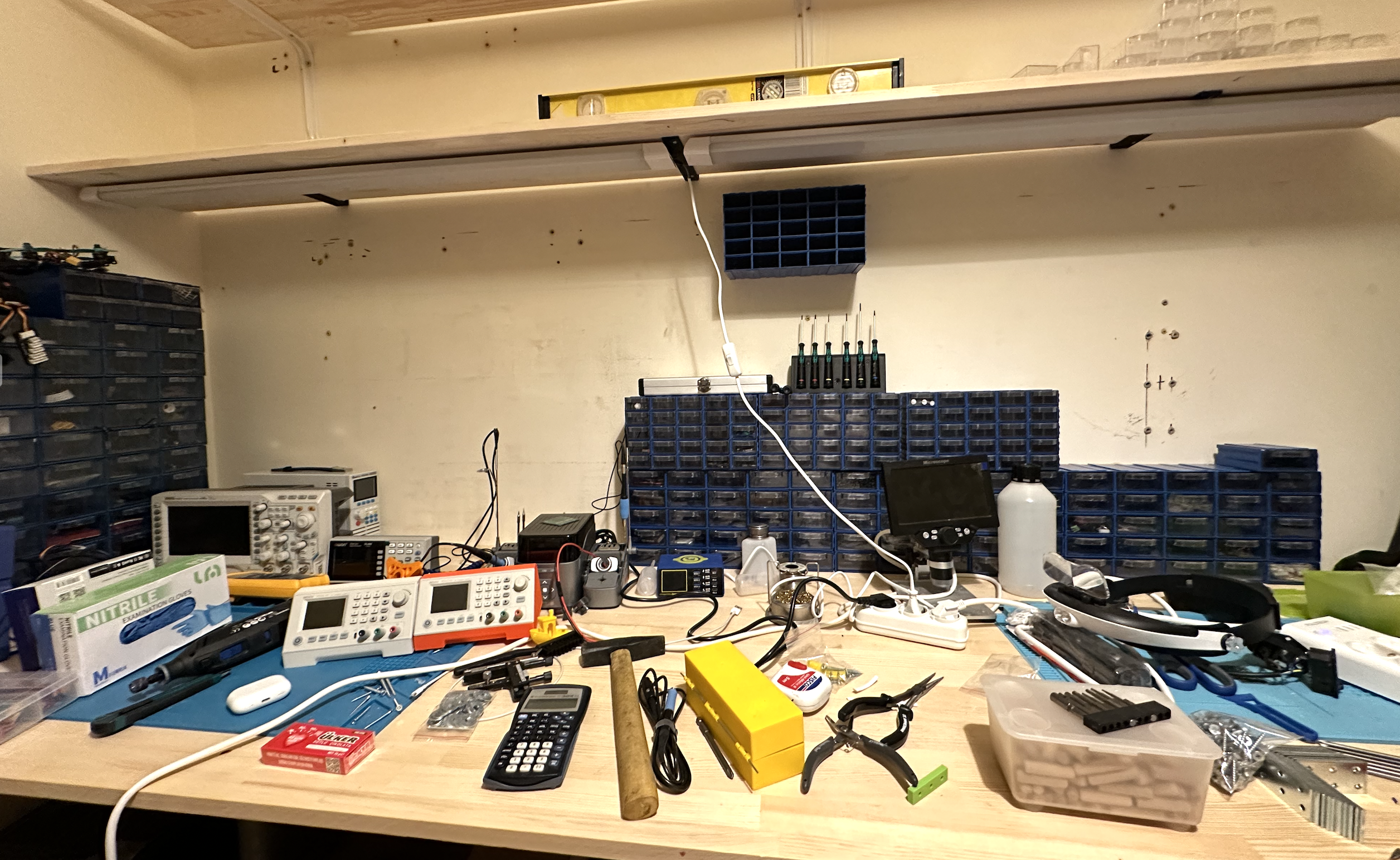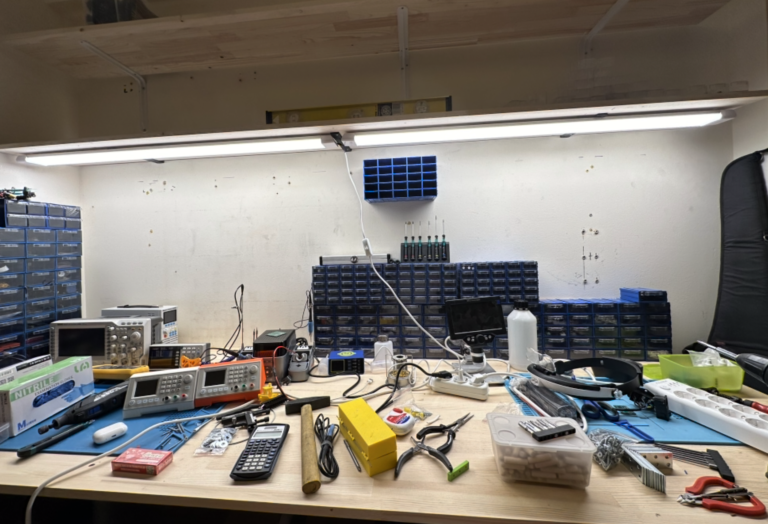 Simdi sirada cekmeceli kutulari buradaki tek ornekte oldugu gibi yukari tasimak var. Boylece tezgah uzeri olabildigince bos olacak. guc kaynaklari 1.5m silikon kablo ile masa uzerinde mobil olacak.