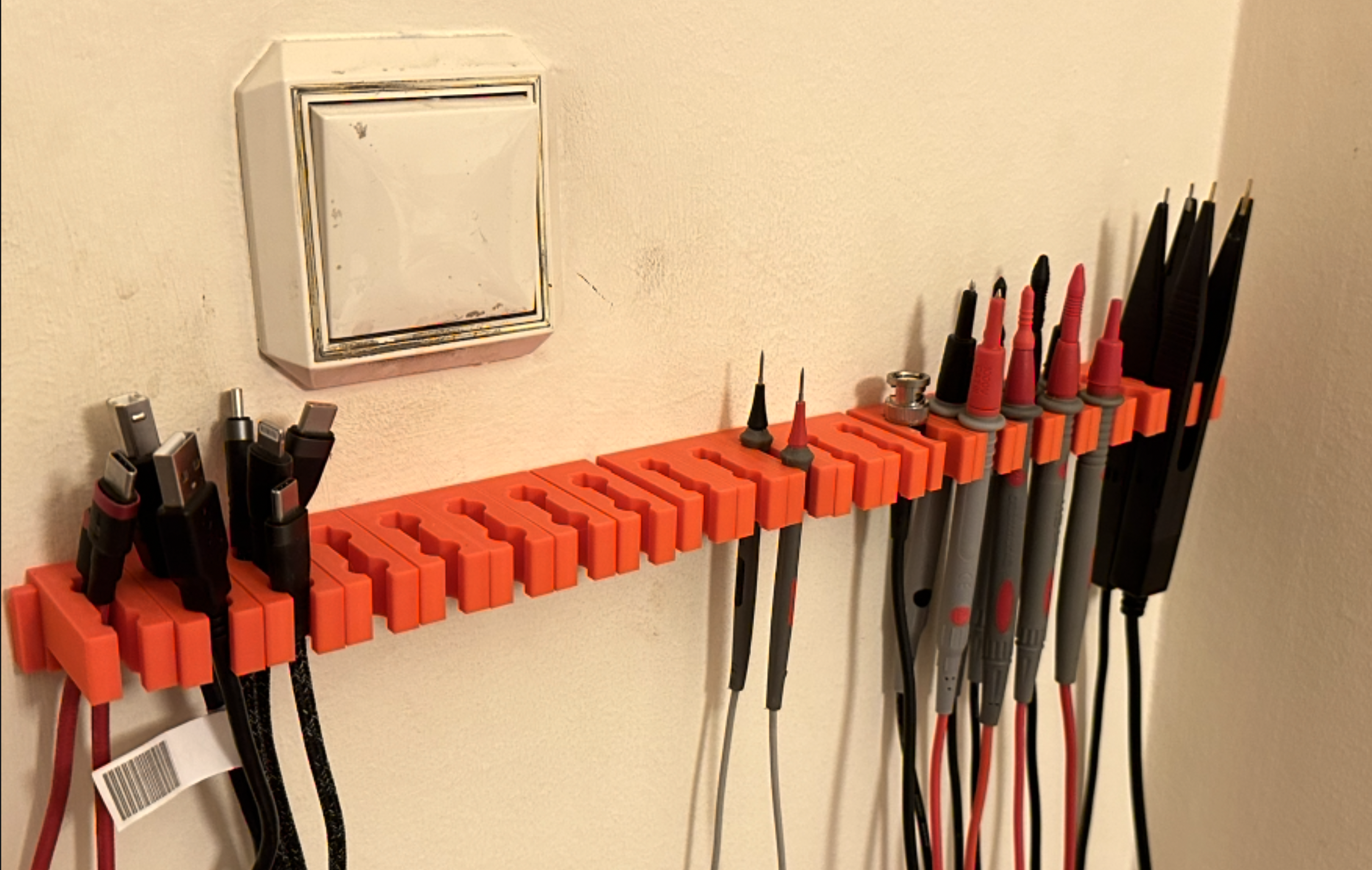 Bu sekilde kablolarin bir kismini organize etmeyi planliyorum. Test problari icin yeterli olacak. Diger kablolar icin su sekilde bir sey yaptim. Kablonun her iki tarafi da yukari gelecek sekilde her bir slota tek kablo gelecek sekilde yerlestirdim. Boylece kabloyu almadan once uclarini rahatlikla gorup secebilecegim. Modeli buradan indirebilirsiniz ( https://www.thingiverse.com/thing:2011419 )