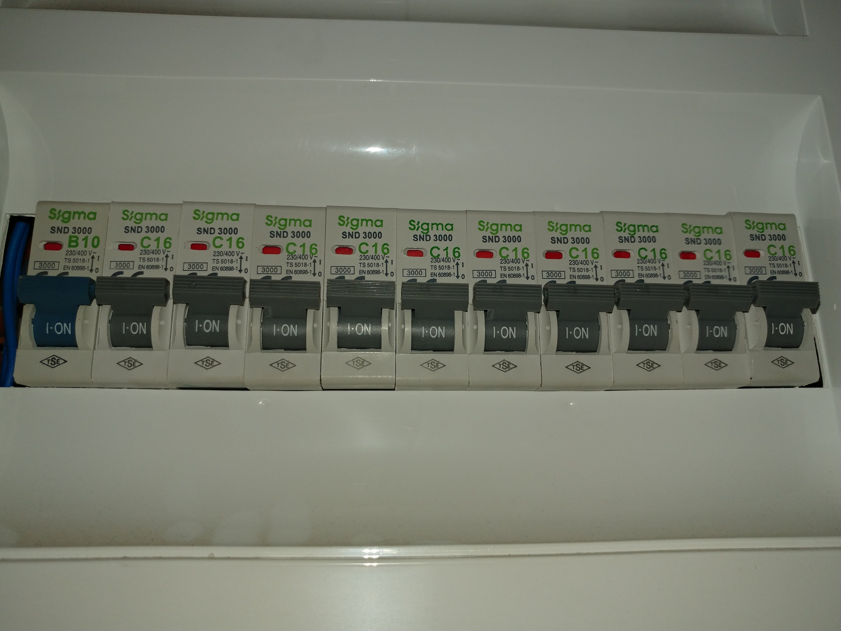 Çalıştığın odanın hattı B10 olan 1. sigortadan gelmiyorsa sen odana B10 koy abi C tipi sigorta normalde ev tesisatında bulunamaz müsait bir zamanda ve maddiyatta siemens-abb-schneider ailesinden sigortalar ile değiştirebilirsin.