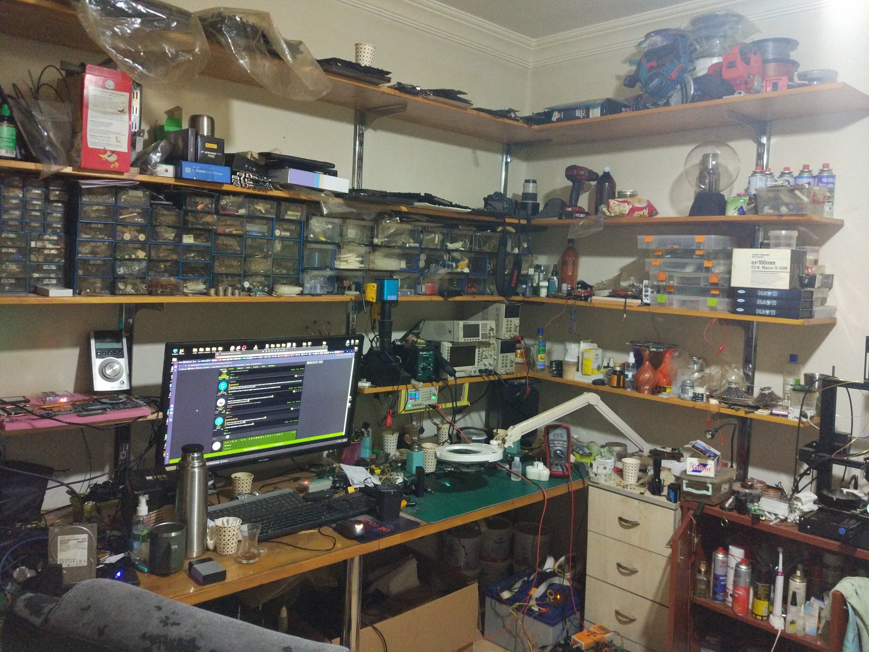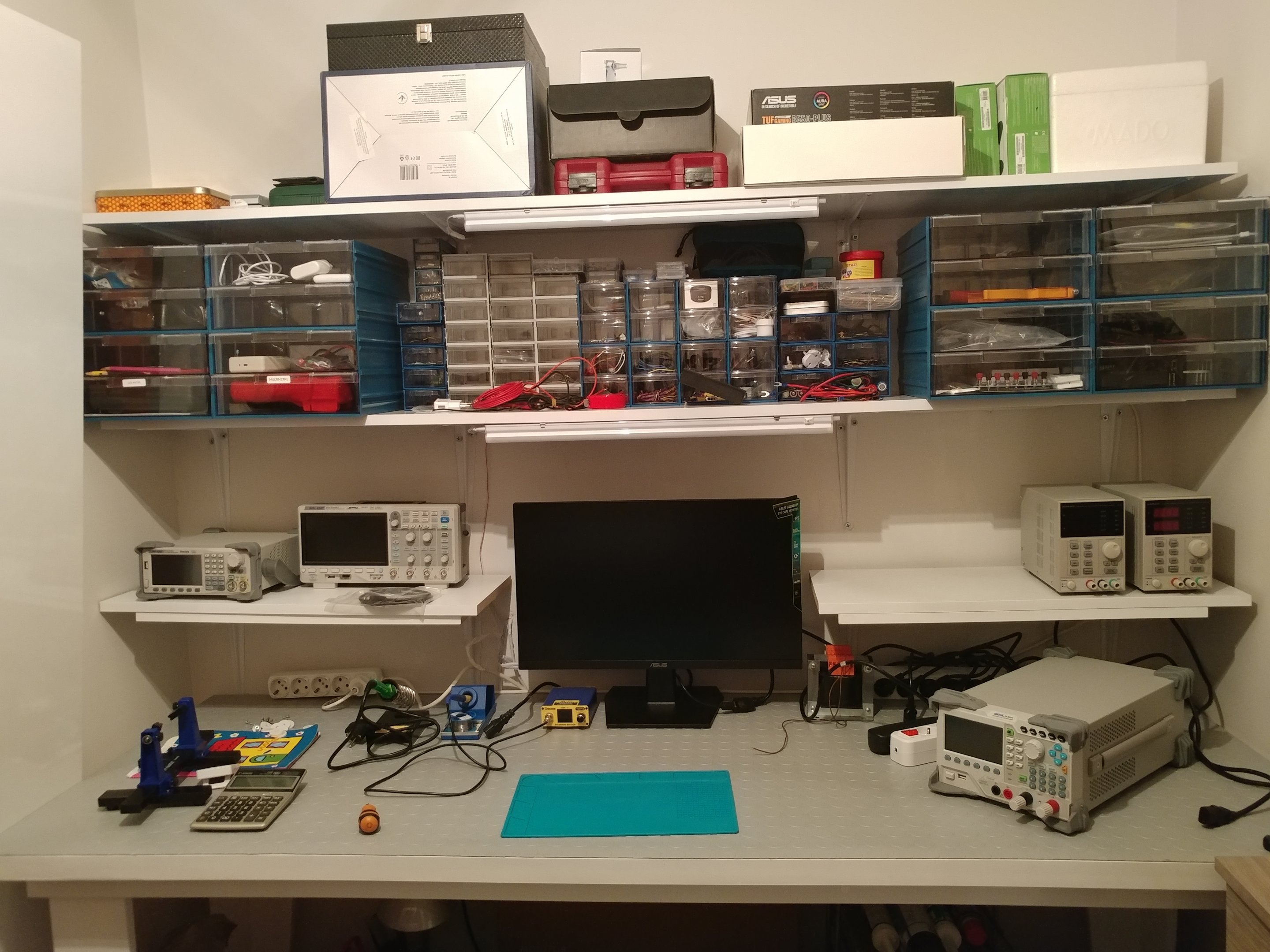 Senin beğenmen önemli. Ben masamı her zaman boş istiyorum. Böylece oraya bir cihaz koyduğum zaman masadaki bütün boş alanı tüketmemiş oluyorum. Senin masada mesela ben olsam sadece havya setini bırakırdım aşağıda.